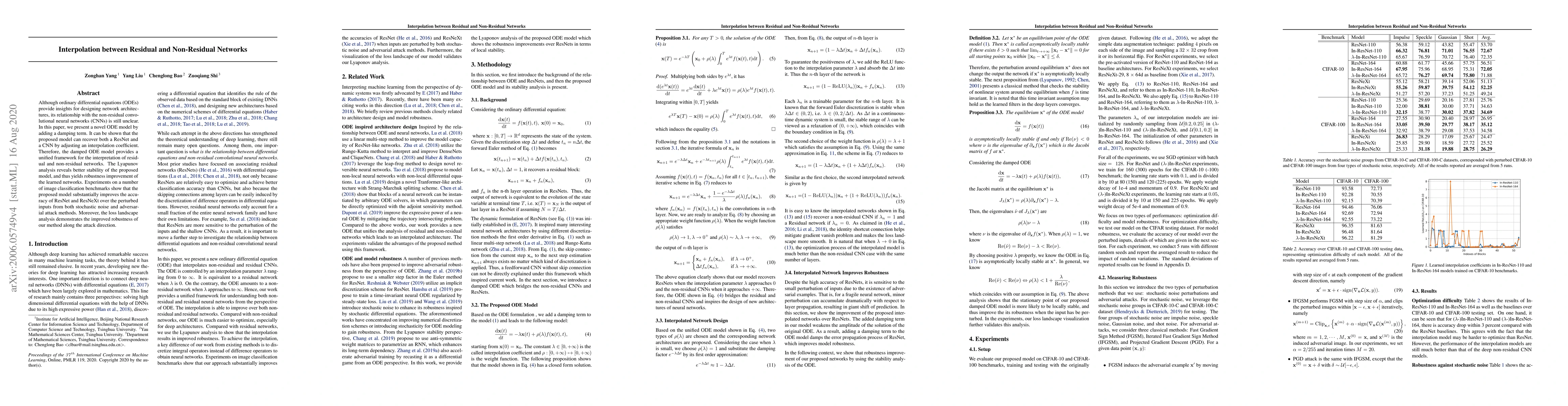 A new ODE model with a damping term is introduced, allowing for interpolation between residual and non-residual networks, improving robustness and accuracy.