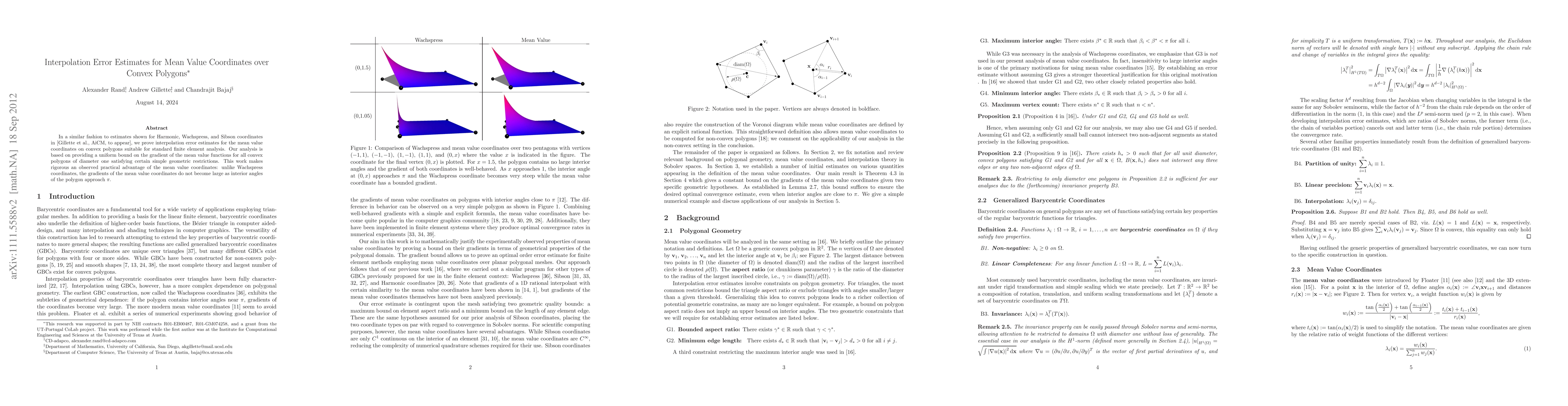 This paper establishes interpolation error estimates for mean value coordinates on convex polygons, providing a uniform bound on their gradient. Unlike Wachspress coordinates, mean value coordinates maintain manageable gradients even as polygon interior angles approach π, offering practical advantages for finite element analysis.