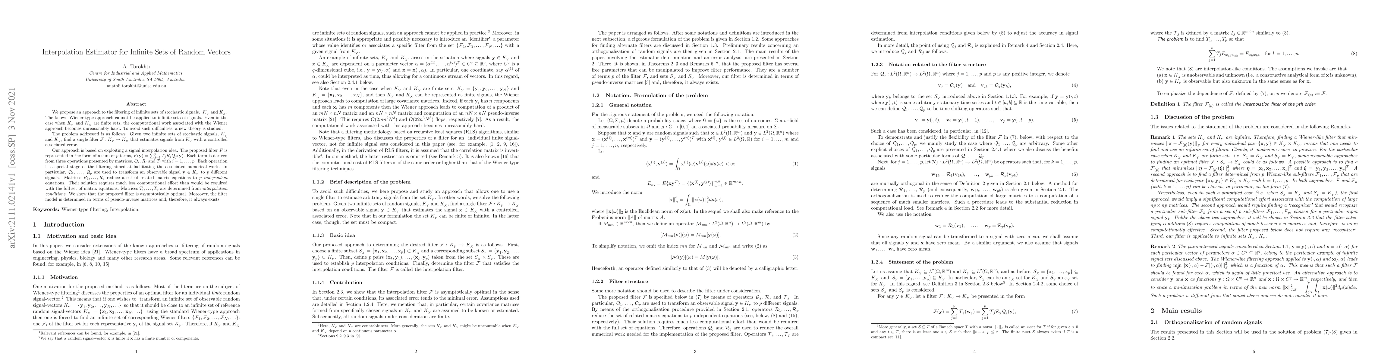 We propose an approach to the estimation of infinite sets of random vectors. The problem addressed is as follows. Given two infinite sets of random vectors, find a single estimator that estimates vectors from with a controlled associated error. A new theory for the existence and implementation of such an estimator is studied. In particular, we show that the proposed estimator is asymptotically optimal. Moreover, the estimator is determined in terms of pseudo-inverse matrices and, therefore, it always exists.