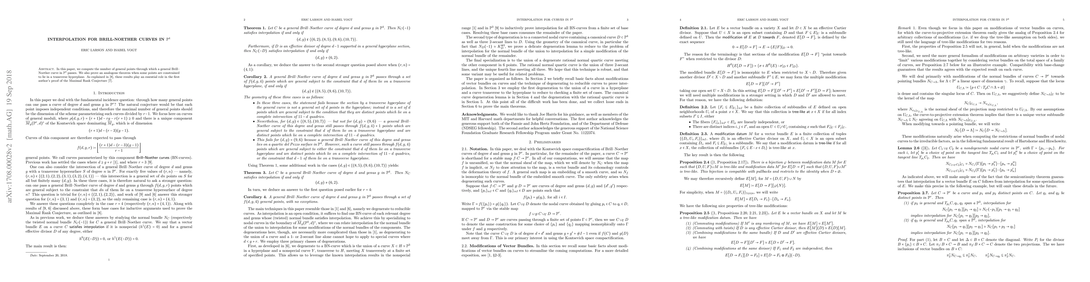 In this paper, we compute the number of general points through which a general Brill-Noether curve in $\mathbb{P}^4$ passes. We also prove an analogous theorem when some points are constrained to lie in a transverse hyperplane. As explained in arXiv:1809.05980, these results play an essential role in the first author's proof of the Maximal Rank Conjecture.