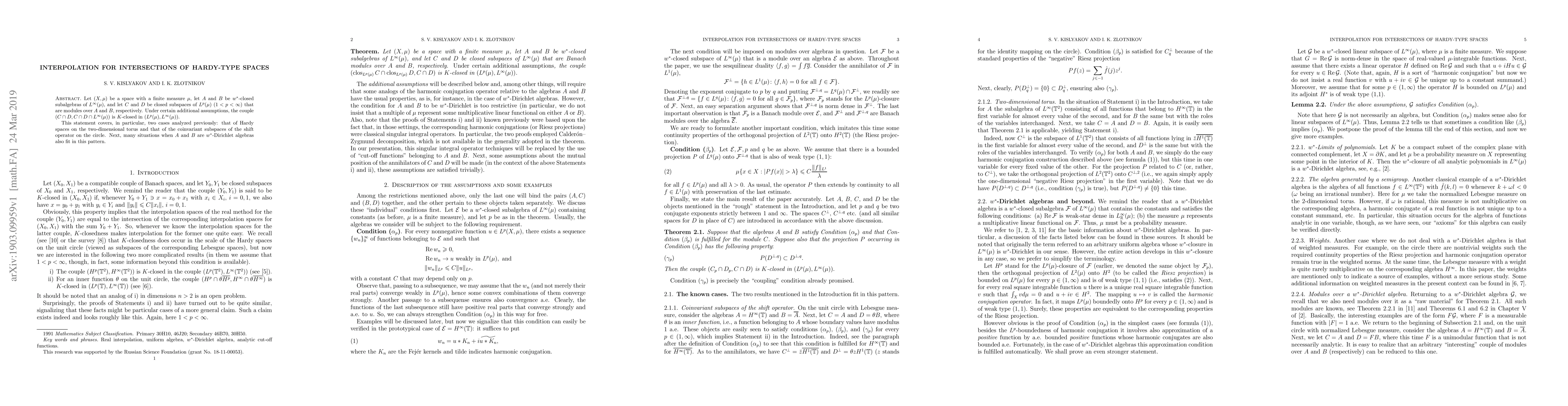This paper explores the $K$-closedness of intersections of Hardy-type spaces, specifically focusing on $w^*$-closed subalgebras of $L^{\infty}(\mu)$ and their associated modules in $L^p(\mu)$. It extends previous results on Hardy spaces on the two-dimensional torus and coinvariant subspaces of the shift operator.