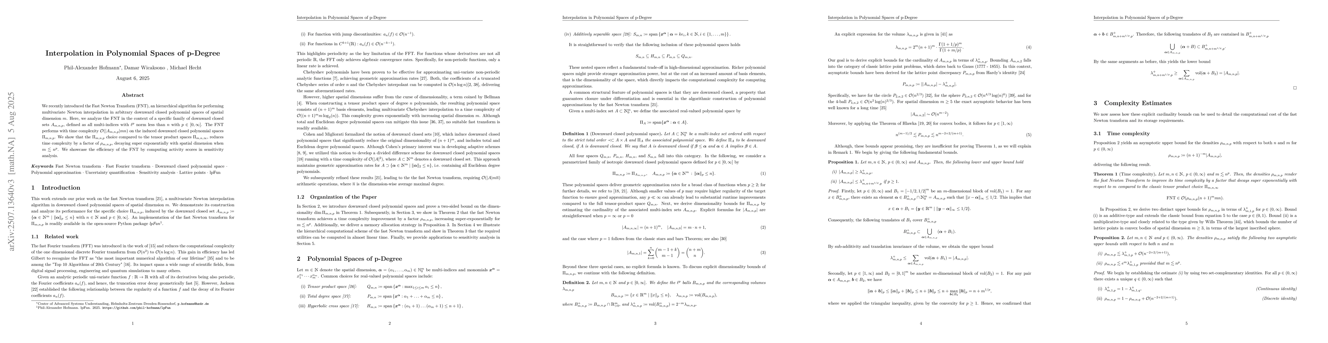 We recently introduced the Fast Newton Transform (FNT), an algorithm for performing multivariate Newton interpolation in downward closed polynomial spaces of spatial dimension $m$. In this work, we analyze the FNT in the context of a specific family of downward closed sets $A_{m,n,p}$, defined as all multi-indices with $\ell^p$ norm less than $n$ with $p \in [0,\infty]$. These sets induce the downward closed polynomial space $\Pi_{m,n,p}$, within which the FNT algorithm achieves a time complexity of $\mathcal{O}(|A_{m,n,p}|mn)$. We show that this setting, compared to tensor product spaces, yields an improvement in complexity by a factor $\rho_{m,n,p}$, which decays super exponentially with increasing spatial dimension when $m \lesssim n^p$. Additionally, we demonstrate the construction of the hierarchical scheme employed by the FNT and showcase its performance to compute activity scores in sensitivity analysis.