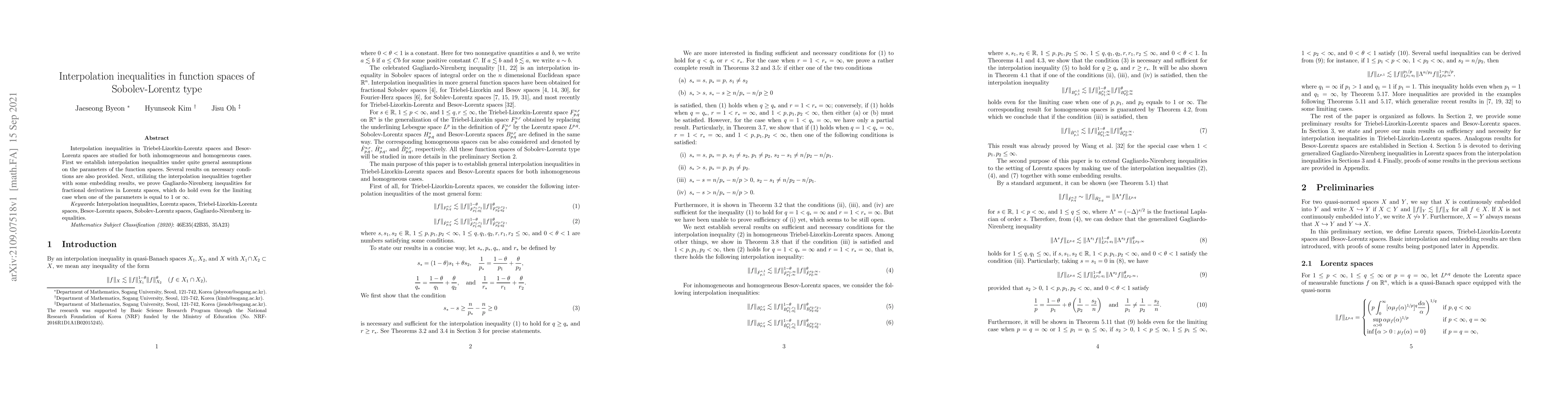 This paper establishes interpolation inequalities for Triebel-Lizorkin-Lorentz and Besov-Lorentz spaces under general conditions, and proves Gagliardo-Nirenberg inequalities for fractional derivatives in Lorentz spaces, valid even for limiting parameter cases.