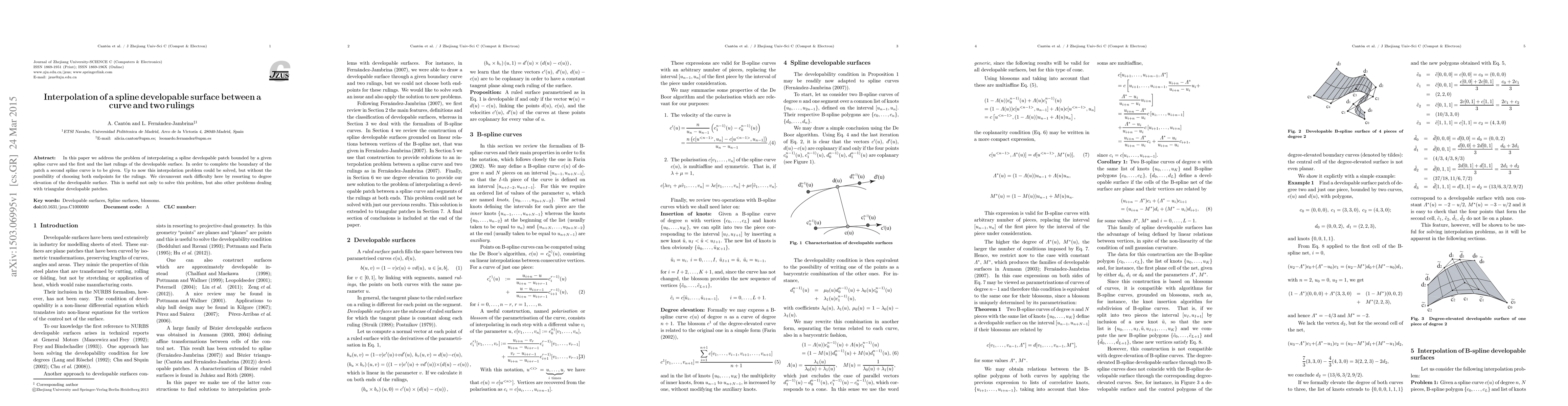 In this paper we address the problem of interpolating a spline developable patch bounded by a given spline curve and the first and the last rulings of the developable surface. In order to complete the boundary of the patch a second spline curve is to be given. Up to now this interpolation problem could be solved, but without the possibility of choosing both endpoints for the rulings. We circumvent such difficulty here by resorting to degree elevation of the developable surface. This is useful not only to solve this problem, but also other problems dealing with triangular developable patches.