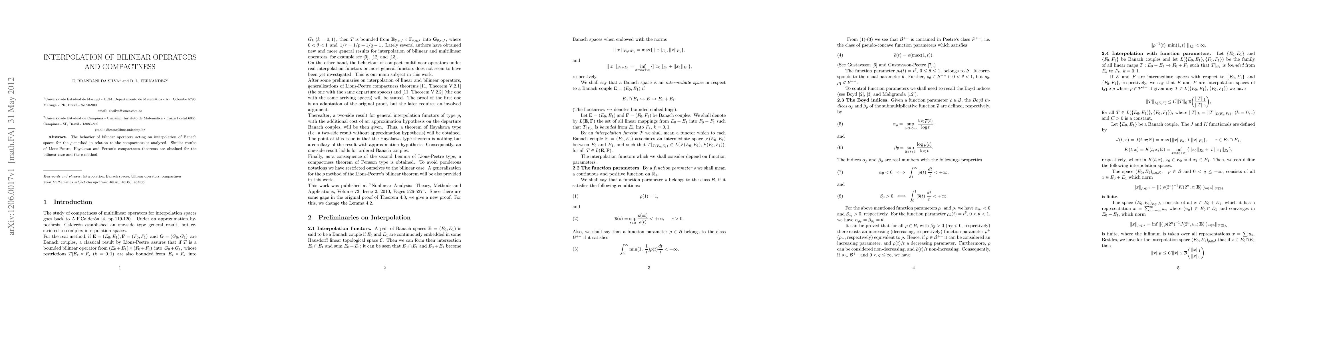 This paper investigates bilinear operators' behavior during interpolation of Banach spaces using the $\rho$ method, establishing compactness results analogous to those of Lions-Peetre, Hayakawa, and Person for the bilinear case.