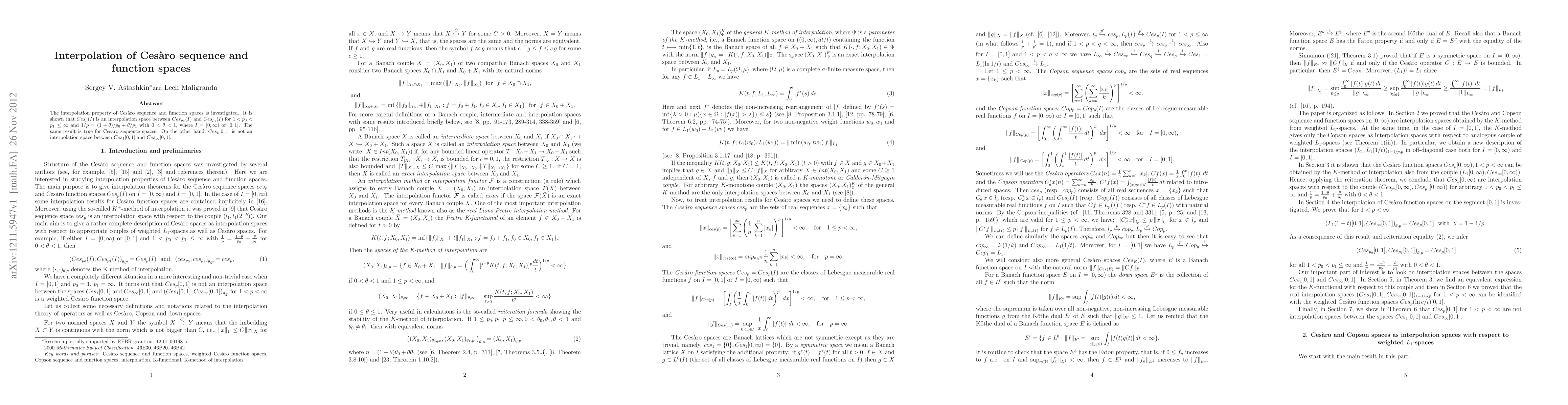 This paper investigates the interpolation properties of Cesàro sequence and function spaces, demonstrating that $Ces_p(I)$ serves as an interpolation space between $Ces_{p_0}(I)$ and $Ces_{p_1}(I)$ for $1 < p_0 < p_1 \leq \infty$. It also finds that $Ces_p[0, 1]$ does not interpolate between $Ces_1[0, 1]$ and $Ces_{\infty}[0, 1]$.