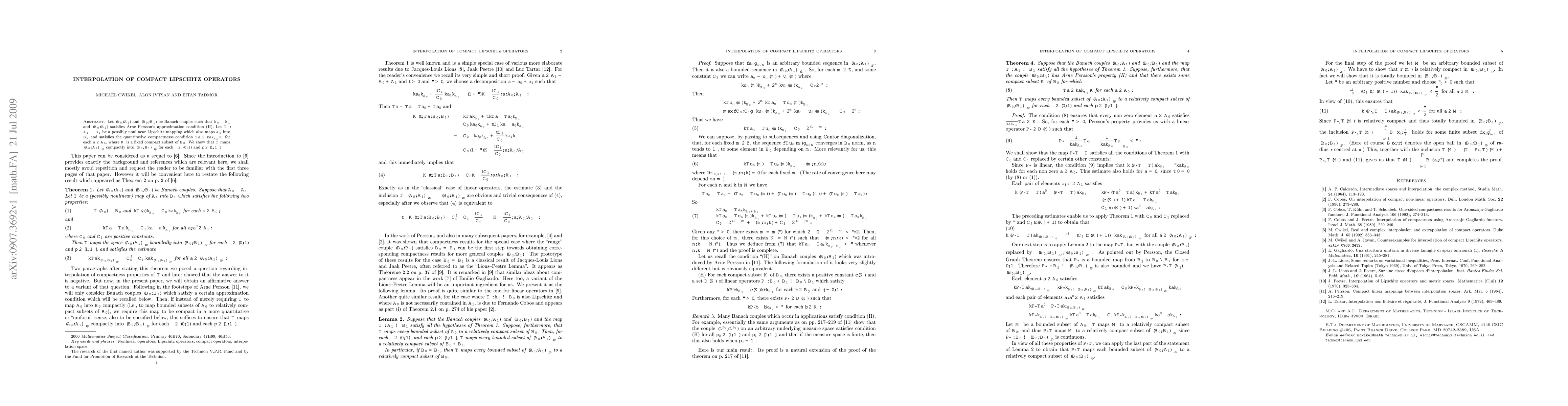 Let (A_0,A_1) and (B_0,B_1) be Banach couples such that A_0 is contained in A_1 and (B_0,B_1) satisfies Arne Persson's approximation condition (H). Let T:A_1 --> B_1 be a possibly nonlinear Lipschitz mapping which also maps A_0 into B_0 and satisfies the following quantitative compactnesss condition: Ta \in ||a||_{A_0} K for each a \in A_0, where K is a fixed compact subset of B_0. We show that T maps the real interpolation space (A_0,A_1)_{\theta,p} compactly into its counterpart (B_0,B_1)_{\theta,p} for each \theta \in (0,1) and p \in [1,\infty].