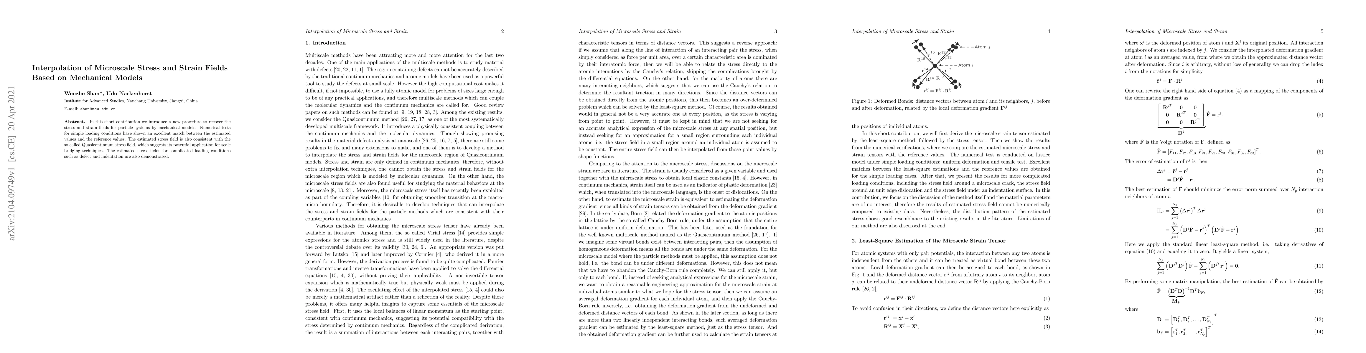 In this short contribution we introduce a new procedure to recover the stress and strain fields for particle systems by mechanical models. Numerical tests for simple loading conditions have shown an excellent match between the estimated values and the reference values. The estimated stress field is also consistent with the so called Quasicontinuum stress field, which suggests its potential application for scale bridging techniques. The estimated stress fields for complicated loading conditions such as defect and indentation are also demonstrated