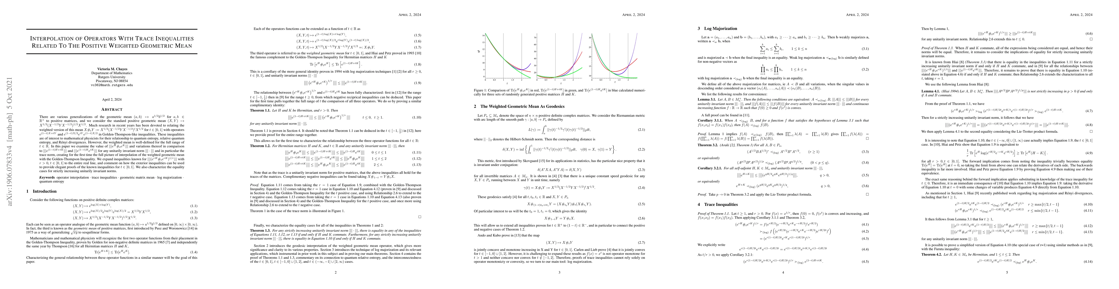 This paper studies interpolation of the weighted geometric mean with Golden-Thompson inequalities, exploring relationships to quantum entropy and norm equivalences for various unitarily invariant norms.