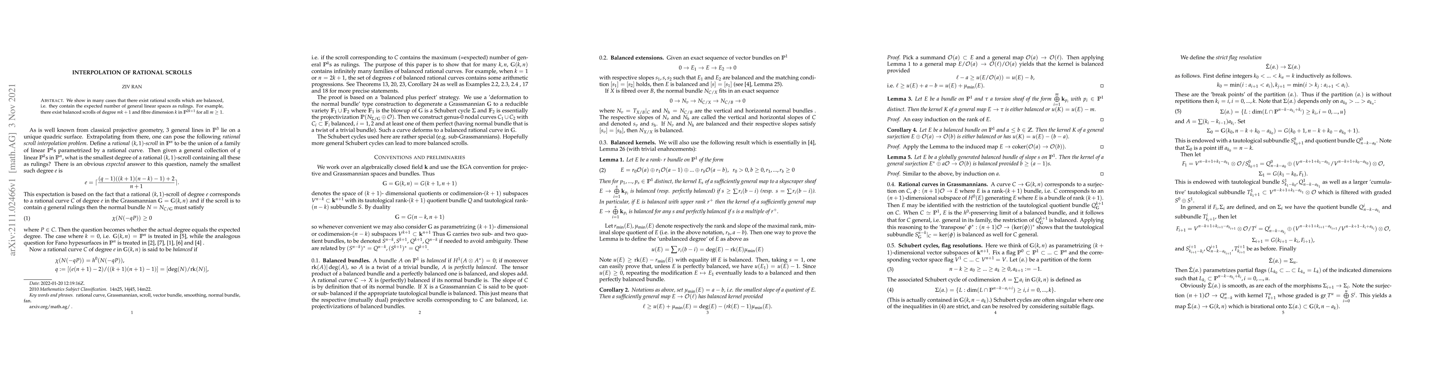Summary: This paper demonstrates the existence of balanced rational scrolls, which contain the expected number of rulings by general linear spaces, specifically for scrolls of degree $mk+1$ and fibre dimension $k$ in $\P^{2k+1}$ for all $m\geq 1$. The study highlights the conditions under which such scrolls can be interpolated.