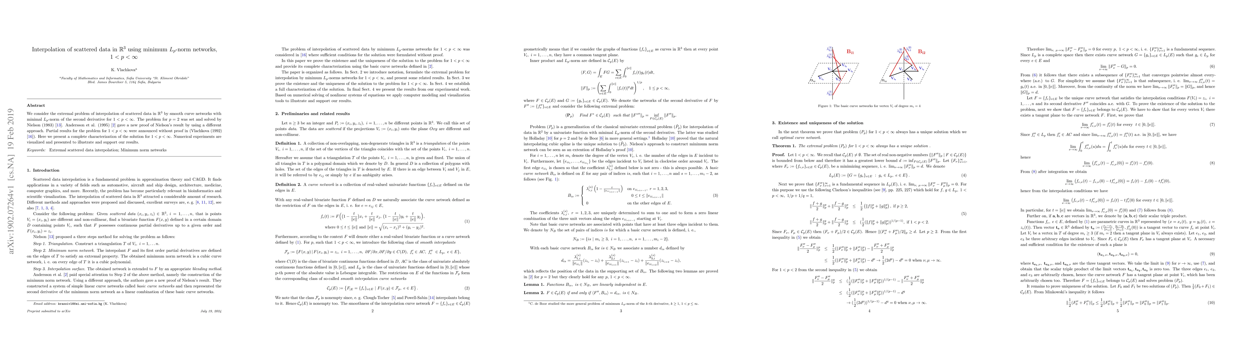 We consider the extremal problem of interpolation of scattered data in $\mathbb{R}^3$ by smooth curve networks with minimal $L_p$-norm of the second derivative for $1