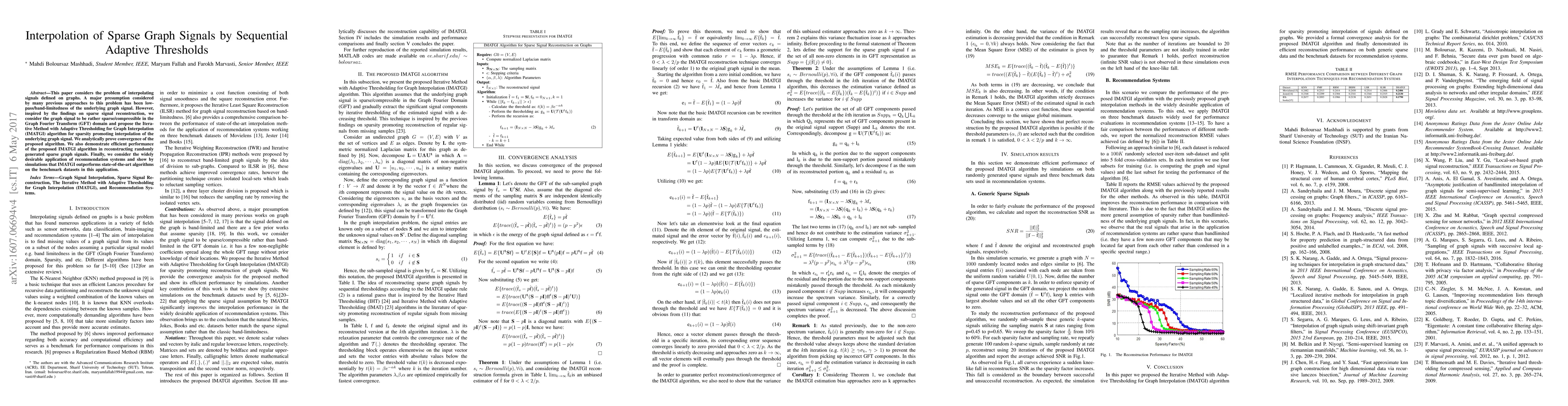 This paper proposes the IMATGI algorithm for interpolating sparse graph signals by adaptive thresholding, focusing on sparsity in the Graph Fourier Transform domain rather than band-limitedness. The algorithm is proven to converge and shown to outperform existing methods in reconstructing sparse graph signals and in recommendation systems applications.