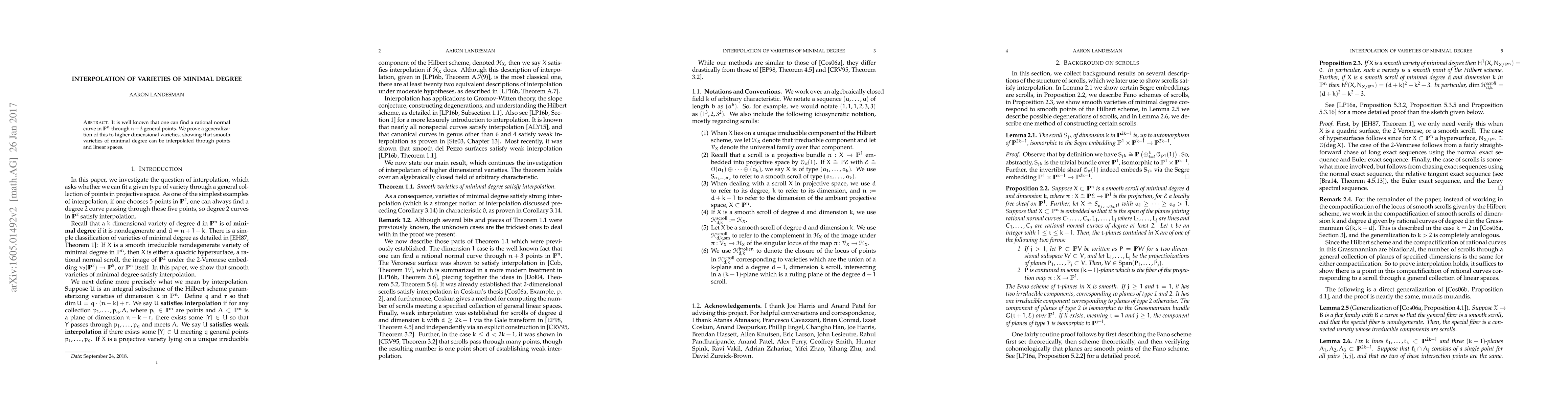 Summary: This paper generalizes the concept of rational normal curves to higher-dimensional varieties, demonstrating that smooth varieties of minimal degree can be interpolated through points and linear spaces, extending the classical result for curves.
