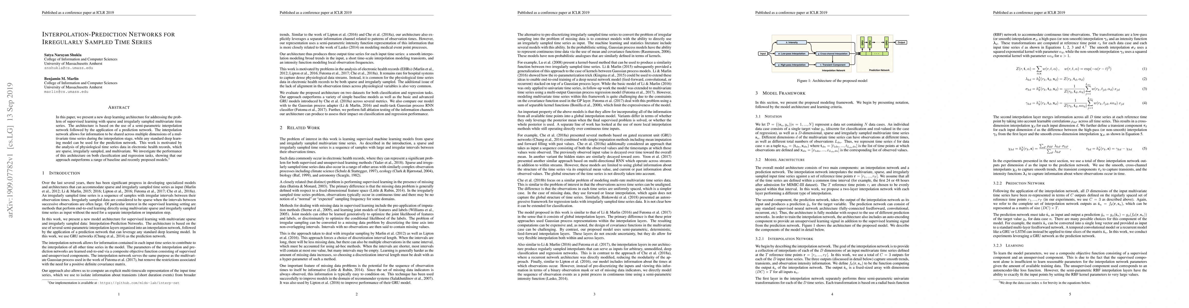 This paper introduces a deep learning architecture comprising an interpolation network followed by a prediction network to handle sparse, irregularly sampled multivariate time series. The architecture is shown to outperform baseline models in both classification and regression tasks, particularly relevant for analyzing physiological data in electronic health records.