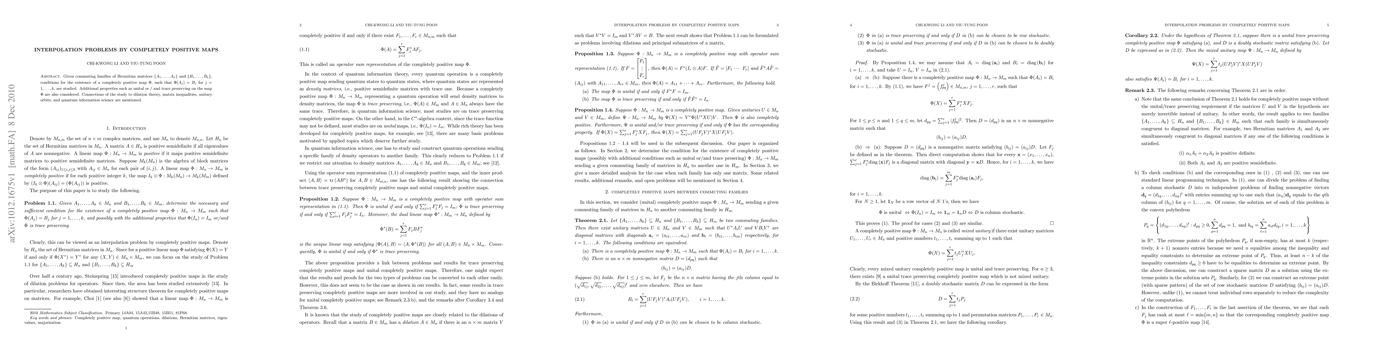 Given commuting families of Hermitian matrices {A1, ..., Ak} and {B1, ...., Bk}, conditions for the existence of a completely positive map L, such that L(Aj) = Bj for j = 1, ...,k, are studied. Additional properties such as unital or / and trace preserving on the map ? are also considered. Connections of the study to dilation theory, matrix inequalities, unitary orbits, and quantum information science are mentioned.