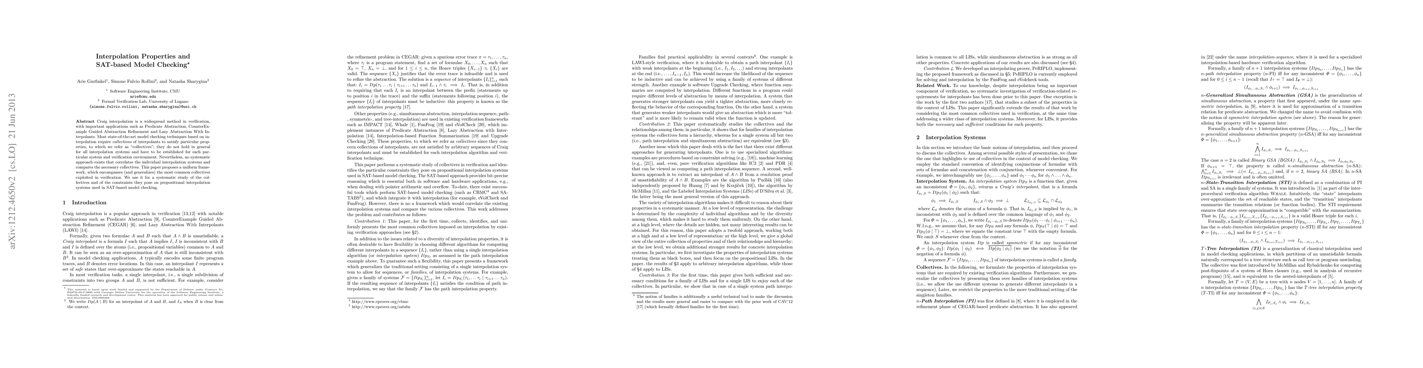 This paper proposes a uniform framework to generalize and systematically study the collectives of interpolation properties used in verification, particularly in SAT-based model checking. It aims to correlate individual interpolation systems and analyze the constraints these collectives impose on them.