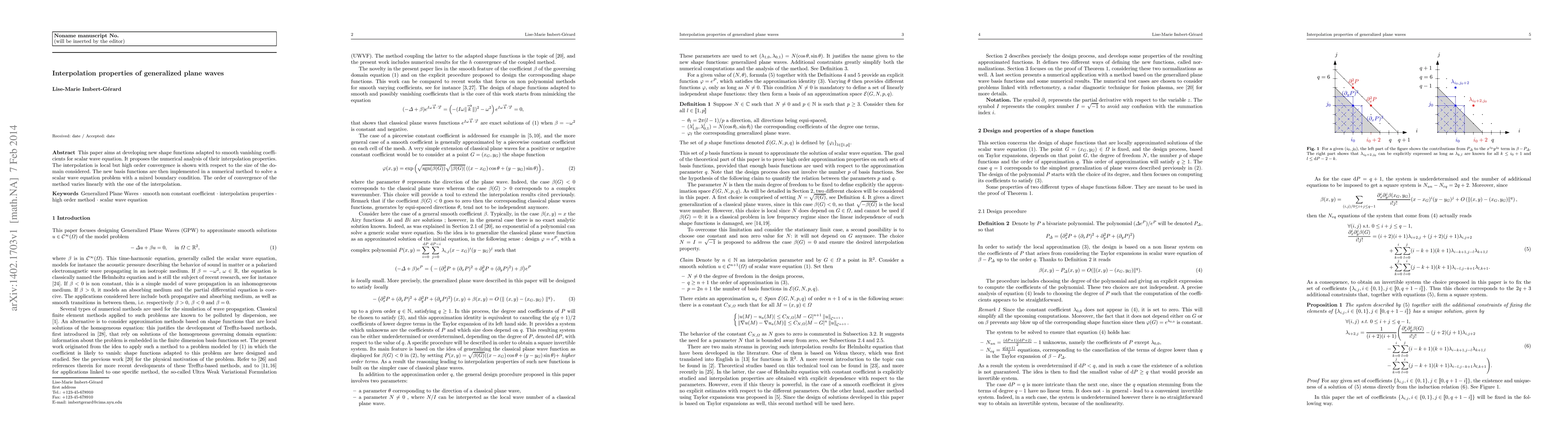This paper aims at developing new shape functions adapted to smooth vanishing coefficients for scalar wave equation. It proposes the numerical analysis of their interpolation properties. The interpolation is local but high order convergence is shown with respect to the size of the domain considered. The new basis functions are then implemented in a numerical method to solve a scalar wave equation problem with a mixed boundary condition. The order of convergence of the method varies linearly with the one of the interpolation.