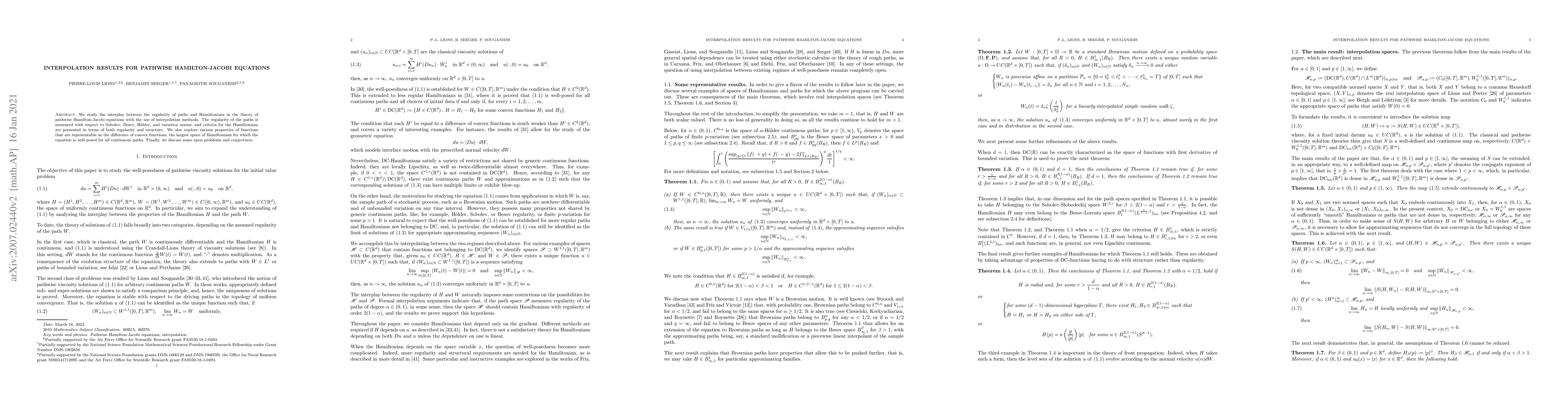We study the interplay between the regularity of paths and Hamiltonians in the theory of pathwise Hamilton-Jacobi equations with the use of interpolation methods. The regularity of the paths is measured with respect to Sobolev, Besov, H\"older, and variation norms, and criteria for the Hamiltonians are presented in terms of both regularity and structure. We also explore various properties of functions that are representable as the difference of convex functions, the largest space of Hamiltonians for which the equation is well-posed for all continuous paths. Finally, we discuss some open problems and conjectures.
