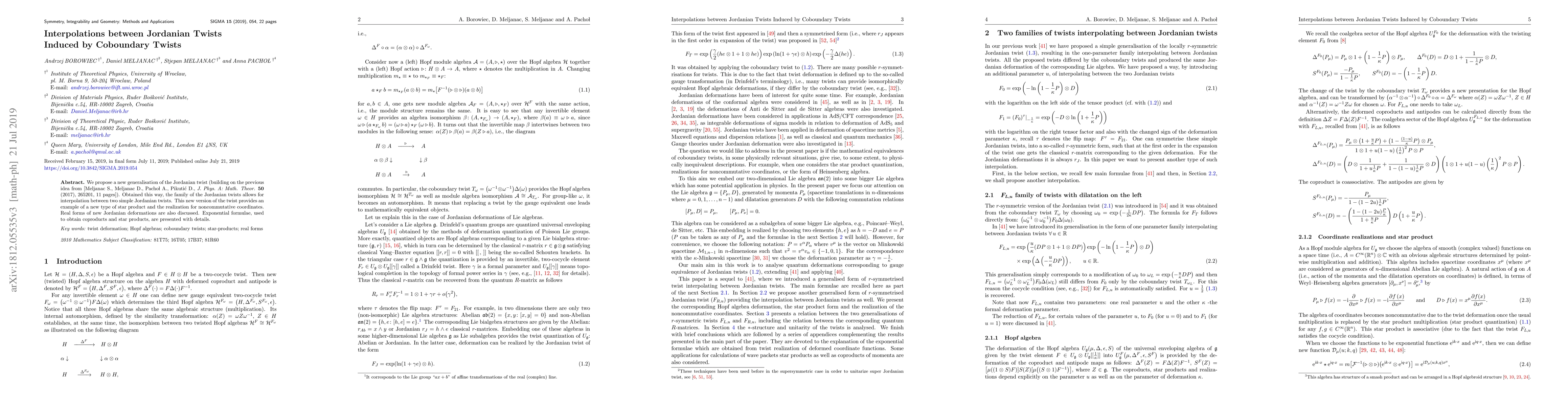 This paper generalizes Jordanian twists by introducing a method to interpolate between two simple Jordanian twists, leading to a new type of star product and noncommutative coordinates. The study also discusses real forms of these deformations and provides detailed exponential formulae for coproducts and star products.