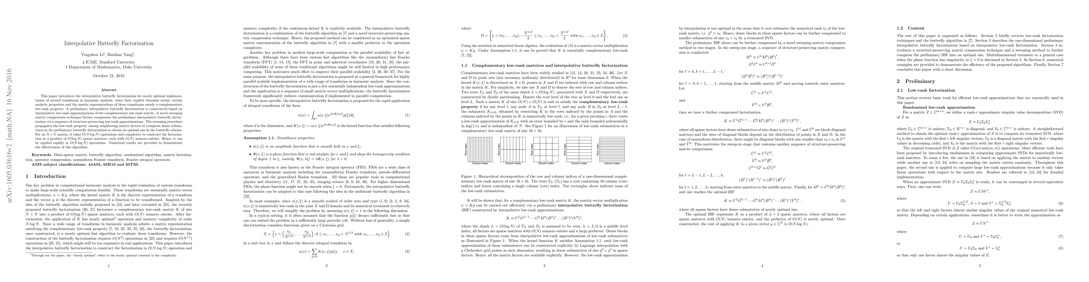 This paper presents an interpolative butterfly factorization method for efficient implementation of harmonic analysis transforms, achieving nearly optimal complexity through a novel sweeping matrix compression technique that reduces dense submatrices into sparse matrices. The algorithm operates in $O(N\log N)$ operations for an $N\times N$ matrix.