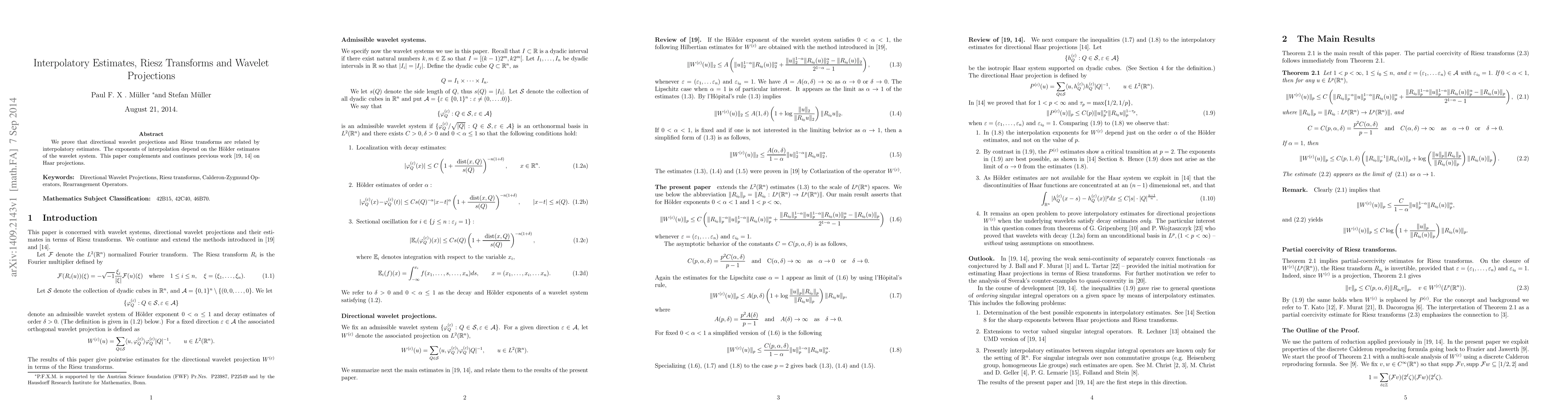 We prove that directional wavelet projections and Riesz transforms are related by interpolatory estimates. The exponents of interpolation depend on the H\"older estimates of the wavelet system. This paper complements and continues previous work on Haar projections.