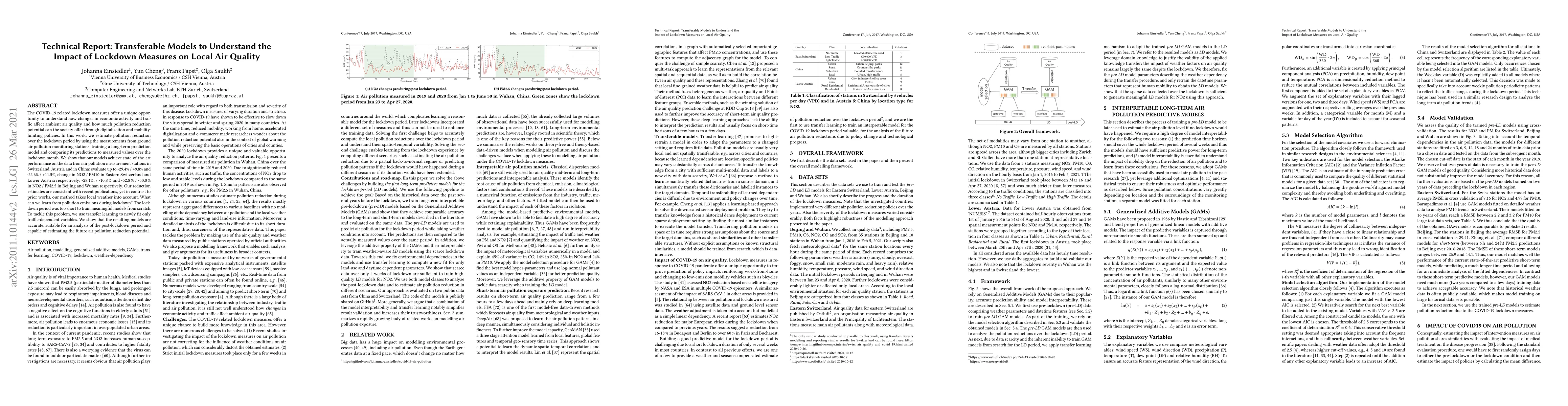 The COVID-19 related lockdown measures offer a unique opportunity to understand how changes in economic activity and traffic affect ambient air quality and how much pollution reduction potential can the society offer through digitalization and mobilitylimiting policies. In this work, we estimate pollution reduction over the lockdown period by using the measurements from ground air pollution monitoring stations, training a long-term prediction model and comparing its predictions to measured values over the lockdown month.We show that our models achieve state-of-the-art performance on the data from air pollution measurement stations in Switzerland and in China: evaluate up to -15.8% / +34.4% change in NO2 / PM10 in Zurich; -35.3 % / -3.5 % and -42.4 % / -34.7 % in NO2 / PM2.5 in Beijing and Wuhan respectively. Our reduction estimates are consistent with recent publications, yet in contrast to prior works, our method takes local weather into account. What can we learn from pollution emissions during lockdown? The lockdown period was too short to train meaningful models from scratch. To tackle this problem, we use transfer learning to newly fit only traffic-dependent variables. We show that the resulting models are accurate, suitable for an analysis of the post-lockdown period and capable of estimating the future air pollution reduction potential.