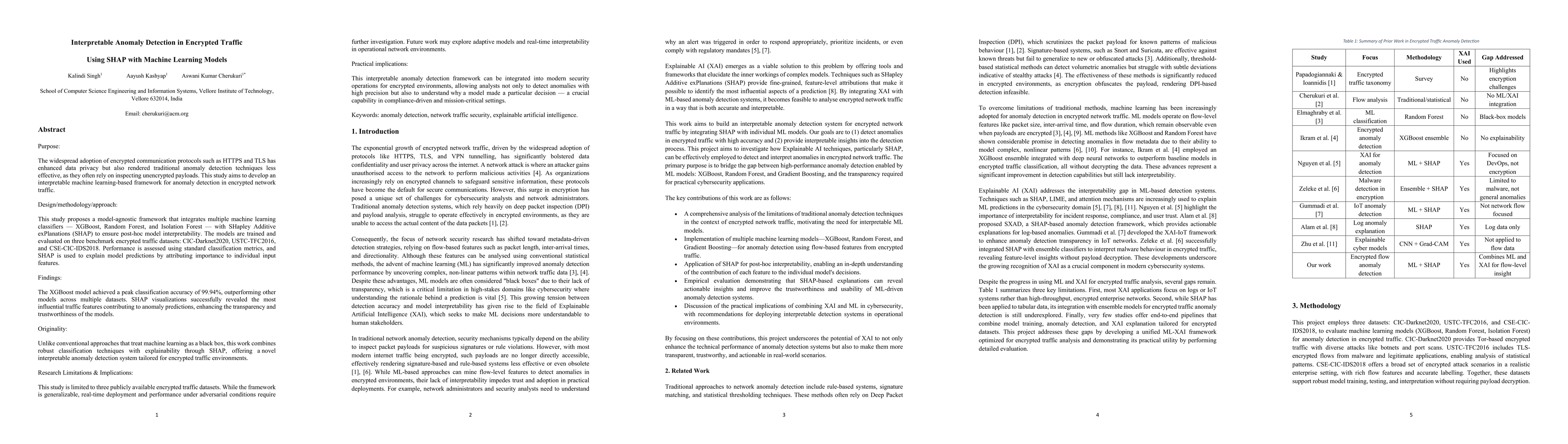 Integration of SHAP with machine learning classifiers for interpretable anomaly detection in encrypted traffic, ensuring transparency and trustworthiness of models.