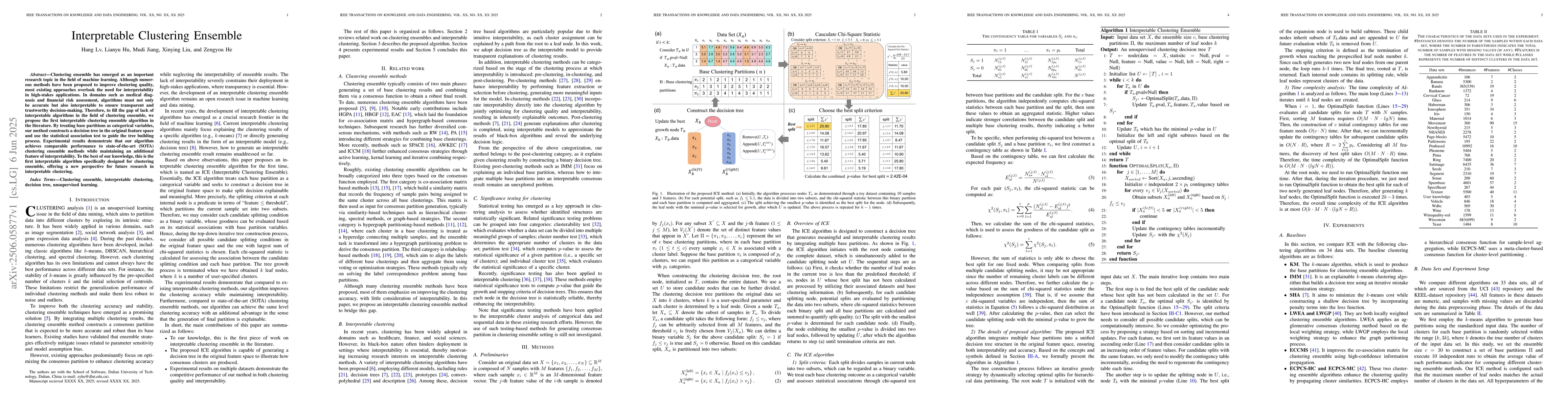 This work presents the novelty of being the first interpretable algorithm specifically designed for clustering ensemble, offering a new perspective for future research in interpretable clustering.