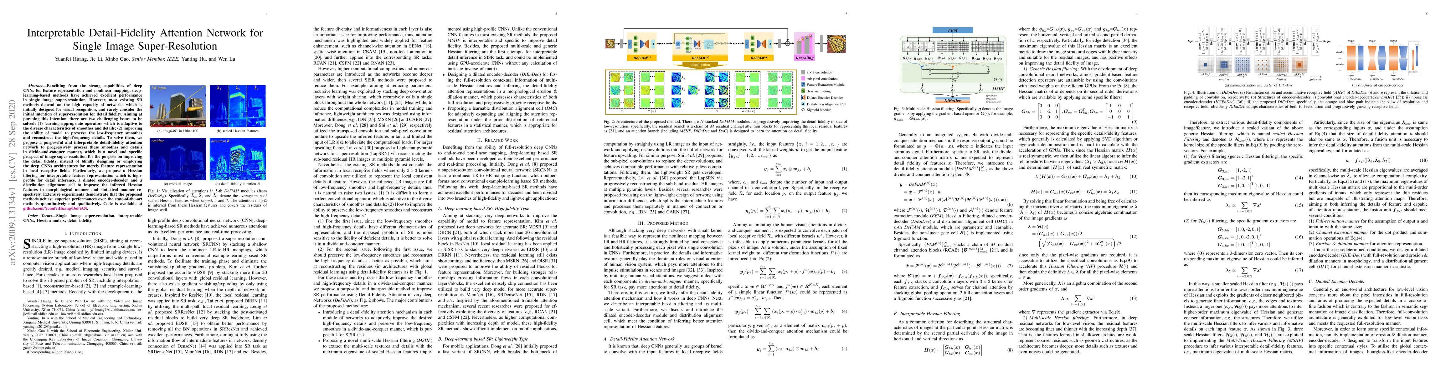 The paper proposes an interpretable detail-fidelity attention network for single image super-resolution, focusing on preserving low-frequency smoothes and reconstructing high-frequency details. It introduces a Hessian filtering, dilated encoder-decoder, and distribution alignment cell to enhance feature representation and detail fidelity, achieving superior performance compared to state-of-the-art methods.