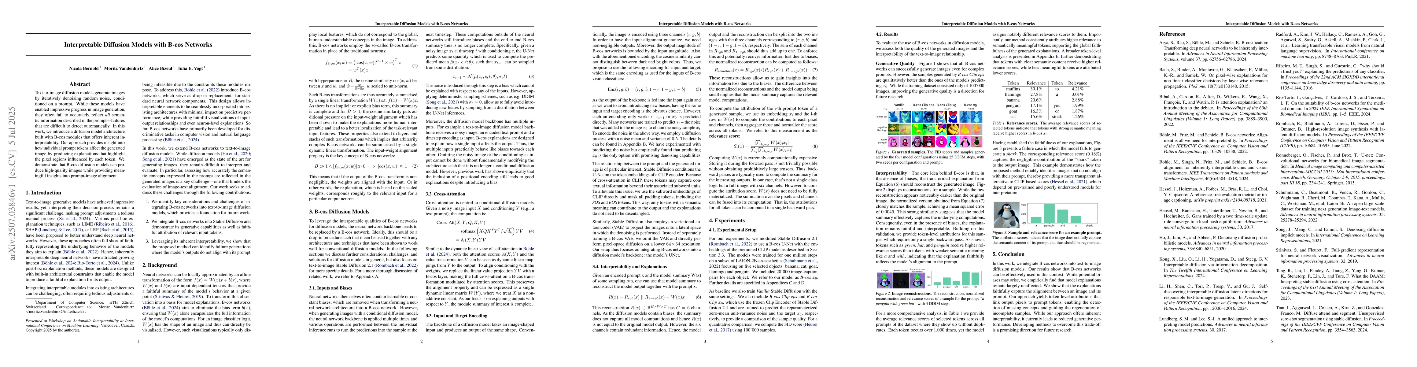 Text-to-image diffusion models generate images by iteratively denoising random noise, conditioned on a prompt. While these models have enabled impressive progress in image generation, they often fail to accurately reflect all semantic information described in the prompt -- failures that are difficult to detect automatically. In this work, we introduce a diffusion model architecture built with B-cos modules that offers inherent interpretability. Our approach provides insight into how individual prompt tokens affect the generated image by producing explanations that highlight the pixel regions influenced by each token. We demonstrate that B-cos diffusion models can produce high-quality images while providing meaningful insights into prompt-image alignment.