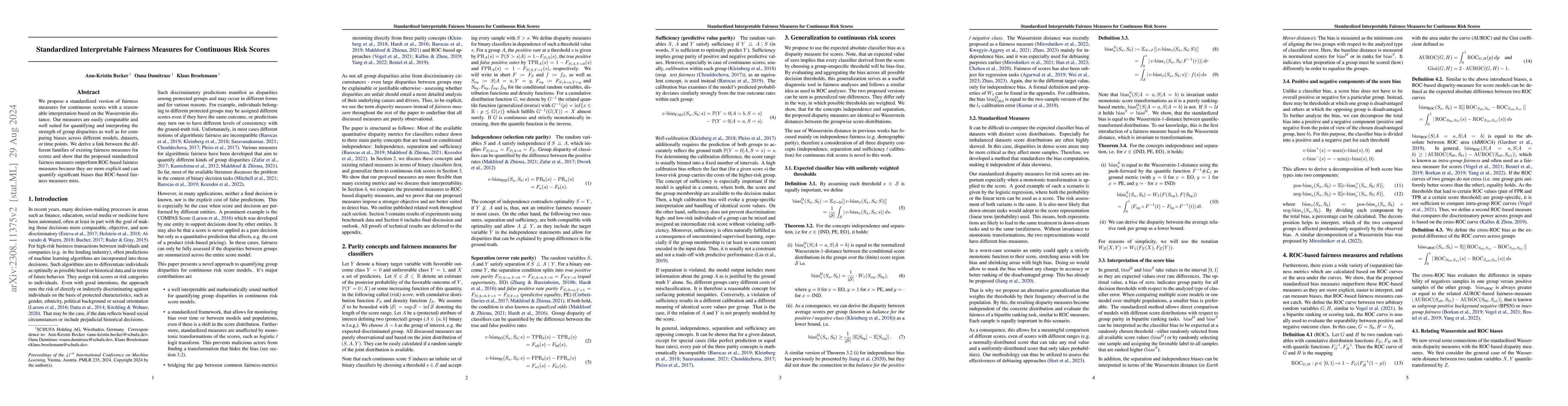 This paper proposes a new distributionally invariant fairness measure for continuous scores based on the Wasserstein distance, offering a more interpretable and effective alternative to ROC-based measures. The proposed measures are easily computable and outperform existing methods by better quantifying significant biases.