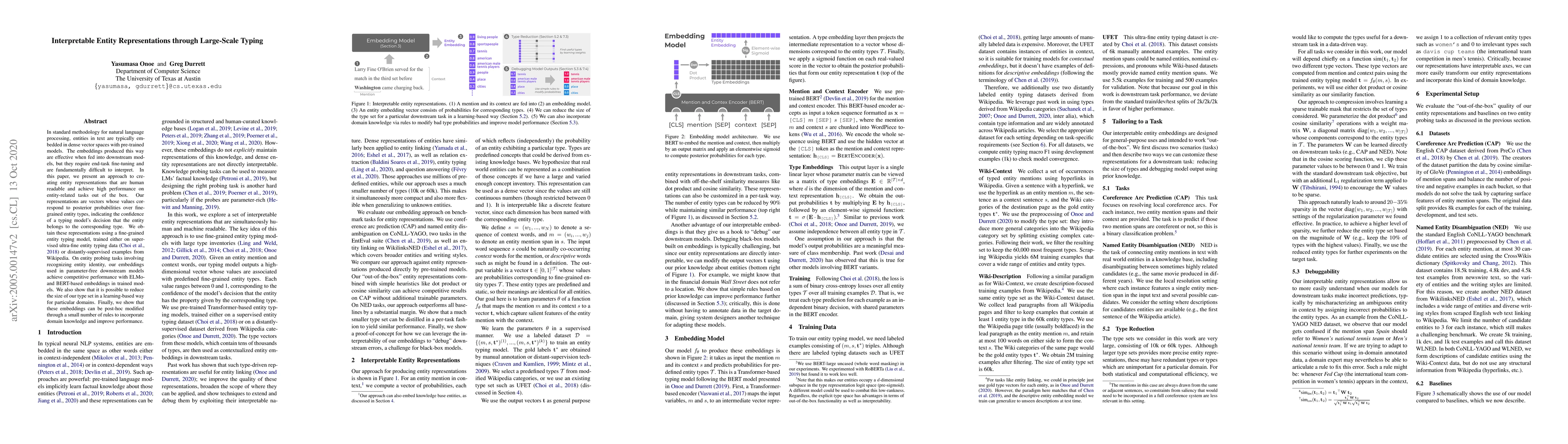 This paper proposes interpretable entity representations derived from fine-grained typing models, achieving competitive performance on entity-related tasks without fine-tuning. The representations, in the form of vectors indicating type posterior probabilities, are shown to perform well on entity probing tasks and can be adapted for specific domains.