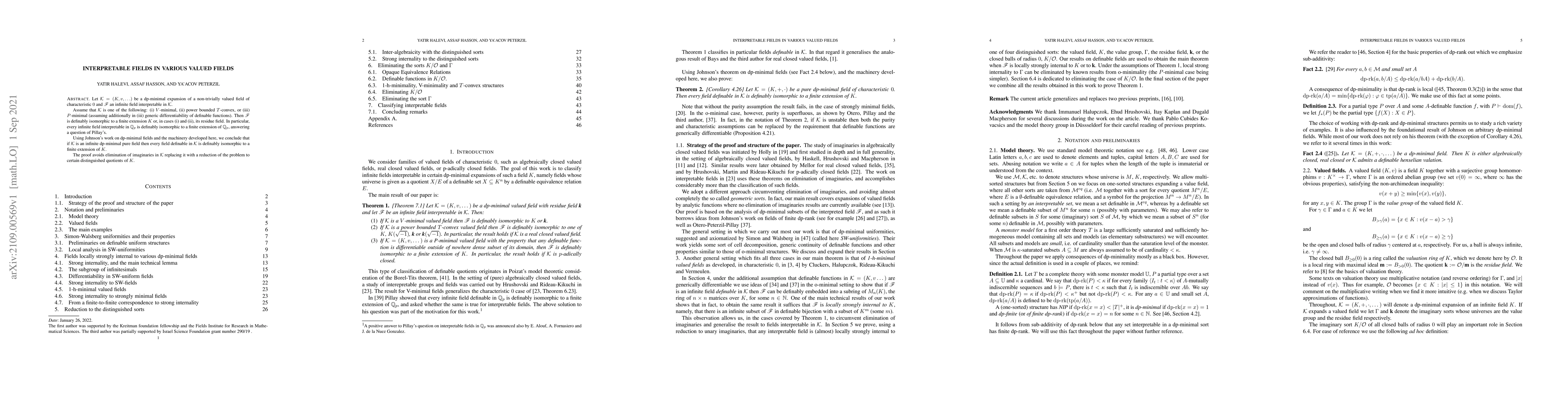 This paper explores the interpretability of infinite fields within dp-minimal expansions of valued fields, showing that such fields are definably isomorphic to finite extensions of the base field or its residue field under specific conditions. The results extend to dp-minimal pure fields, concluding that any definable field in such a structure is a finite extension of the base field.