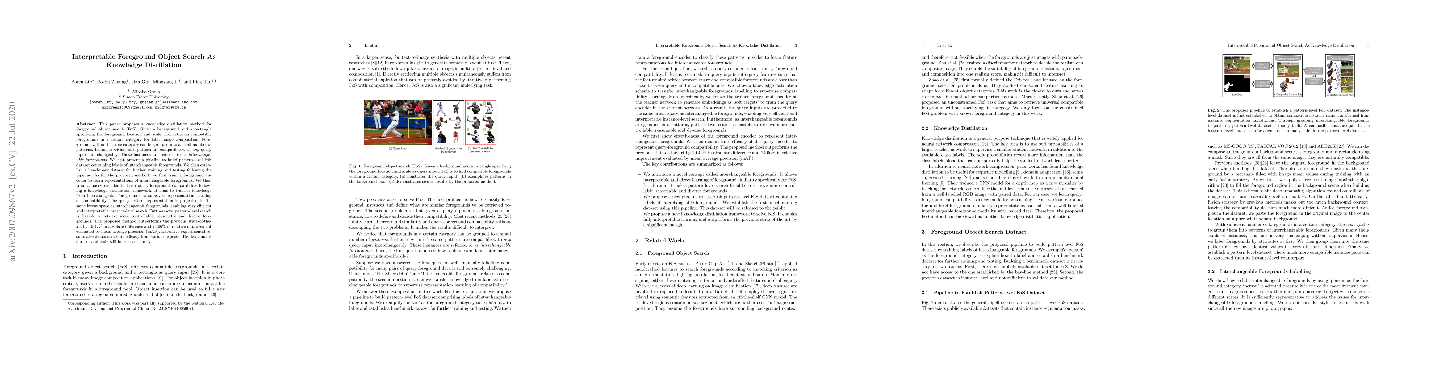 A new method for foreground object search uses knowledge distillation to learn interchangeable foregrounds, enabling efficient and interpretable instance-level search with controllable results.