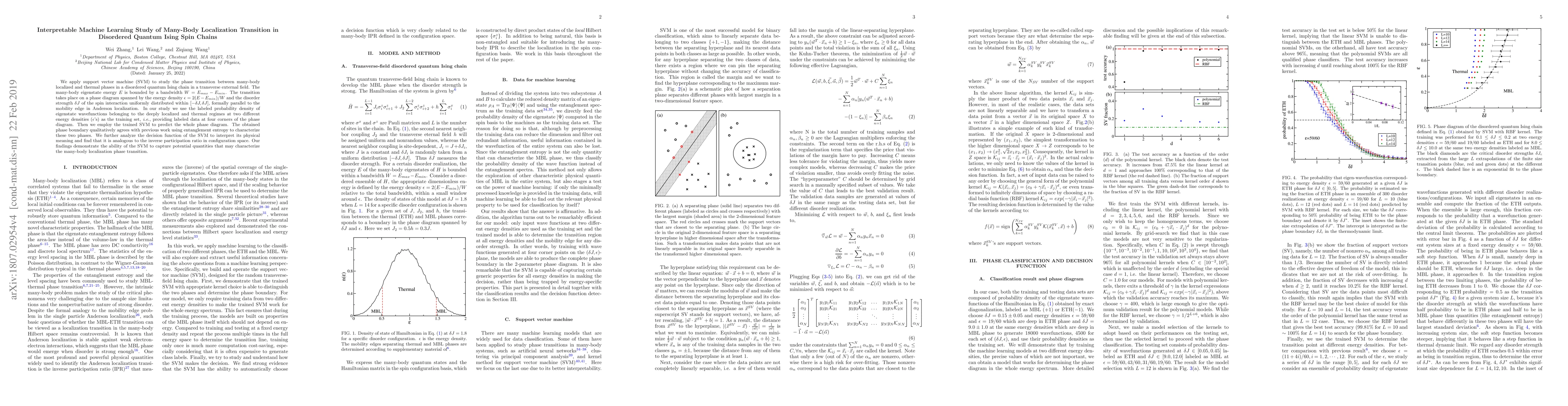 This study uses support vector machines (SVM) to investigate the phase transition in disordered quantum Ising spin chains, finding that the SVM's decision function is analogous to the inverse participation ratio. The SVM successfully predicts the phase boundary, aligning with previous results based on entanglement entropy.