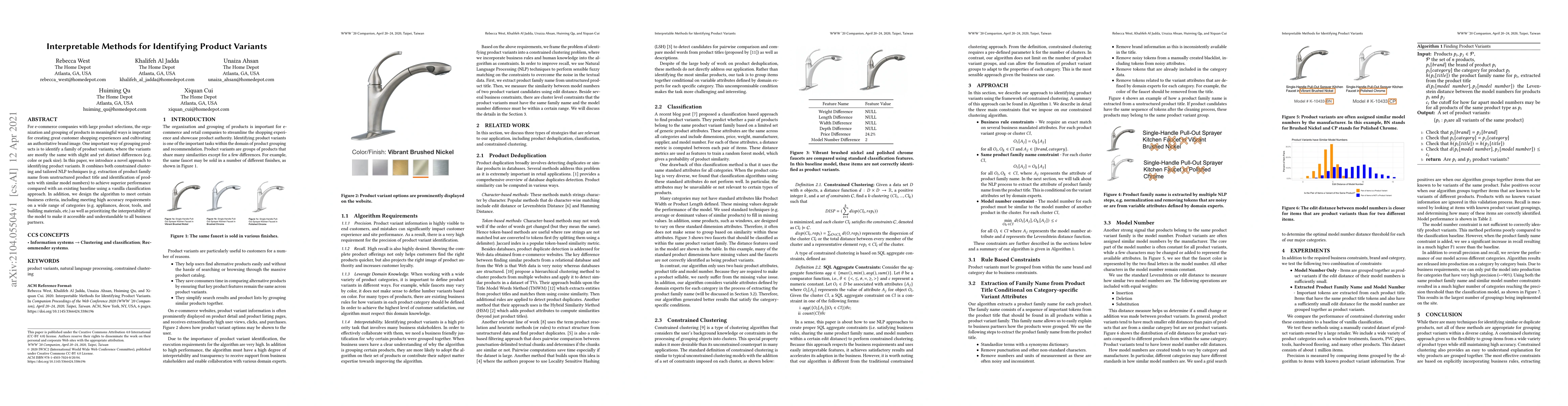 For e-commerce companies with large product selections, the organization and grouping of products in meaningful ways is important for creating great customer shopping experiences and cultivating an authoritative brand image. One important way of grouping products is to identify a family of product variants, where the variants are mostly the same with slight and yet distinct differences (e.g. color or pack size). In this paper, we introduce a novel approach to identifying product variants. It combines both constrained clustering and tailored NLP techniques (e.g. extraction of product family name from unstructured product title and identification of products with similar model numbers) to achieve superior performance compared with an existing baseline using a vanilla classification approach. In addition, we design the algorithm to meet certain business criteria, including meeting high accuracy requirements on a wide range of categories (e.g. appliances, decor, tools, and building materials, etc.) as well as prioritizing the interpretability of the model to make it accessible and understandable to all business partners.