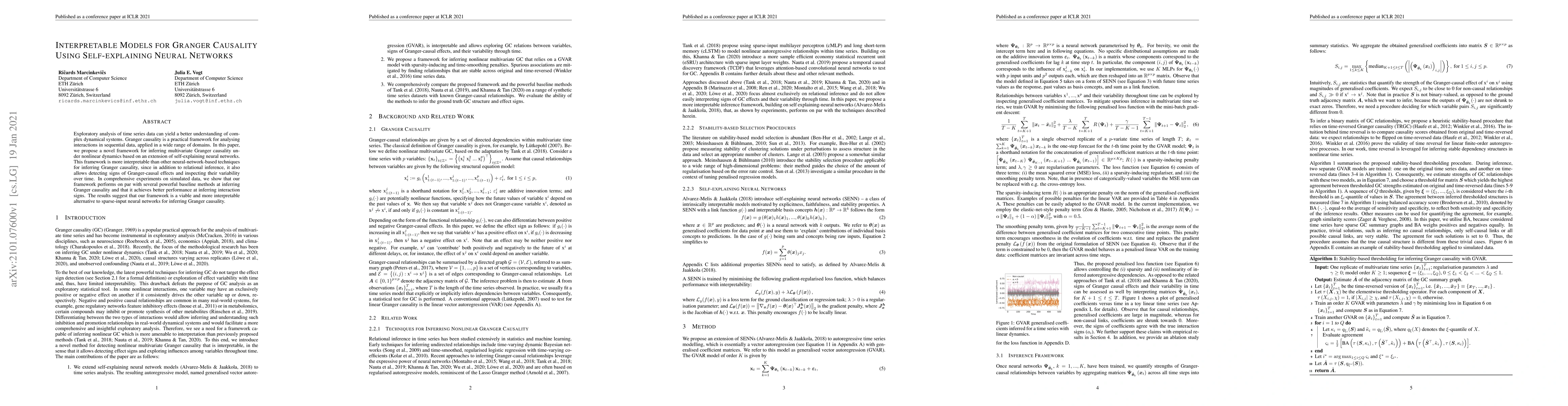 Exploratory analysis of time series data can yield a better understanding of complex dynamical systems. Granger causality is a practical framework for analysing interactions in sequential data, applied in a wide range of domains. In this paper, we propose a novel framework for inferring multivariate Granger causality under nonlinear dynamics based on an extension of self-explaining neural networks. This framework is more interpretable than other neural-network-based techniques for inferring Granger causality, since in addition to relational inference, it also allows detecting signs of Granger-causal effects and inspecting their variability over time. In comprehensive experiments on simulated data, we show that our framework performs on par with several powerful baseline methods at inferring Granger causality and that it achieves better performance at inferring interaction signs. The results suggest that our framework is a viable and more interpretable alternative to sparse-input neural networks for inferring Granger causality.