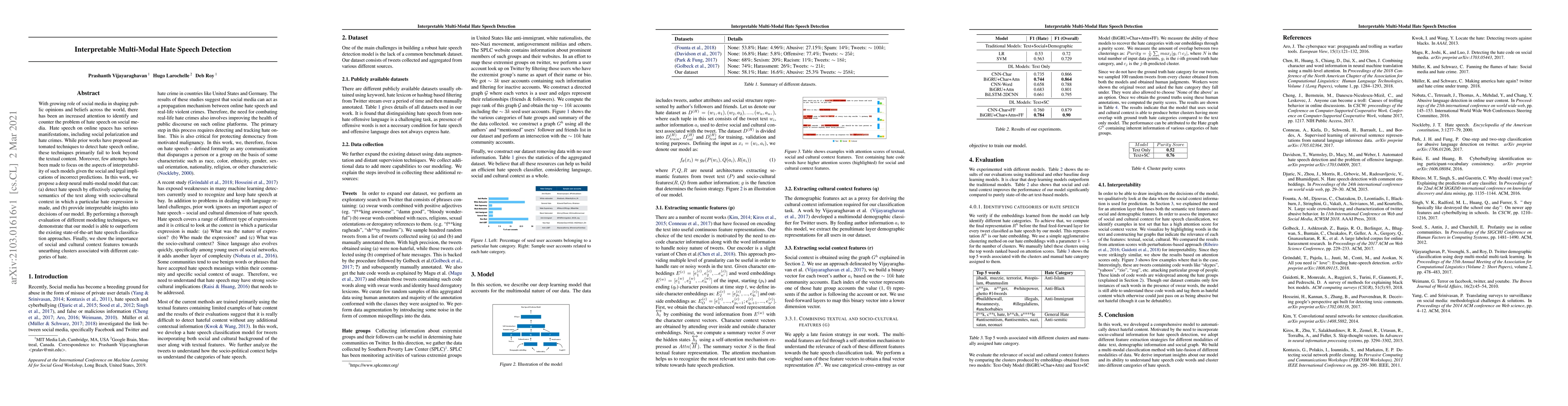 This paper proposes a deep neural multi-modal model for detecting hate speech on social media by integrating textual content with socio-cultural context, and emphasizes the model's interpretability to address social and legal implications. The model outperforms existing techniques and highlights the significance of social and cultural context in identifying hate speech categories.