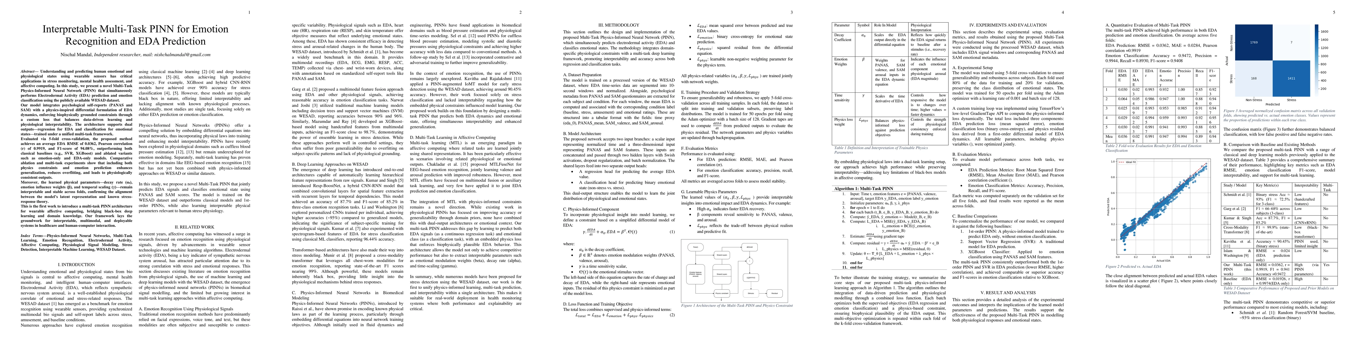 A novel Multi-Task Physics-Informed Neural Network (PINN) model achieves high accuracy in predicting Electrodermal Activity (EDA) and emotion classification from wearable sensor data, outperforming classical models.