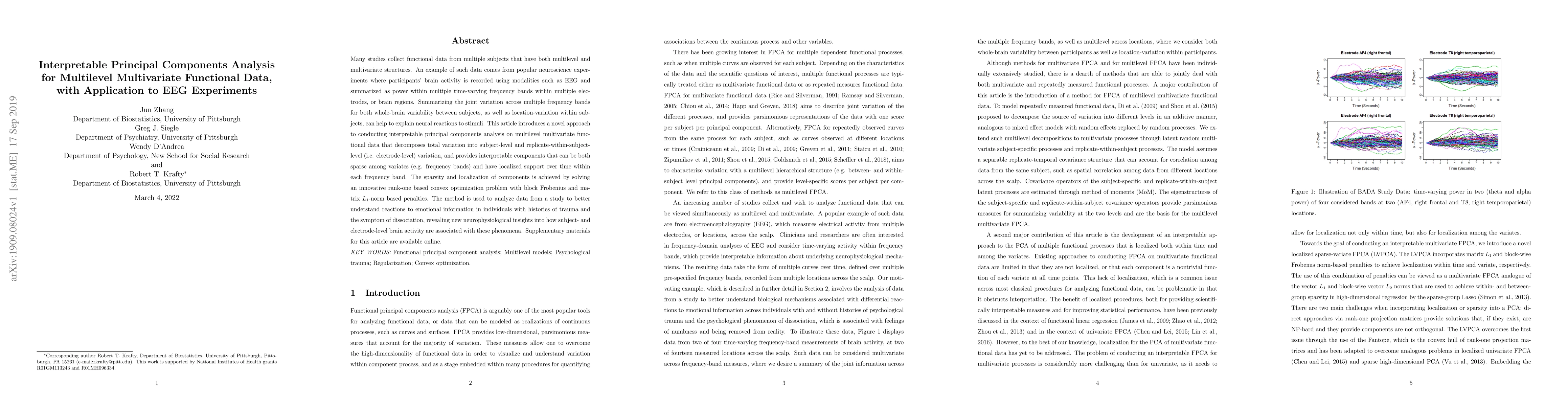 A new approach to analyzing multilevel multivariate functional data from neuroscience experiments reveals insights into how brain activity is associated with trauma and dissociation in individuals. The method uses principal components analysis to separate subject-level and electrode-level variation, providing interpretable components that capture localized support over time.