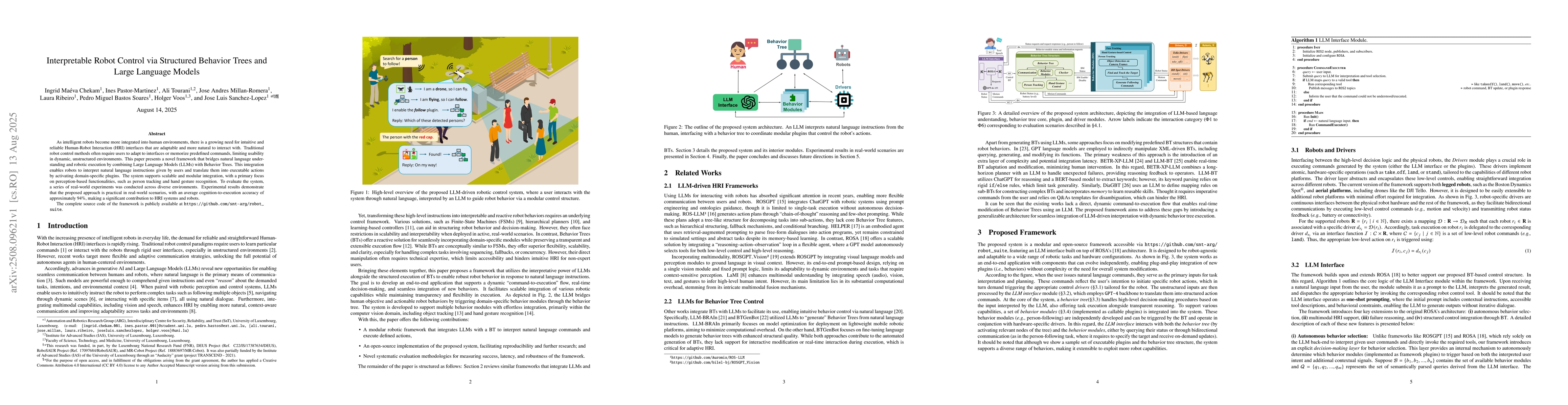 As intelligent robots become more integrated into human environments, there is a growing need for intuitive and reliable Human-Robot Interaction (HRI) interfaces that are adaptable and more natural to interact with. Traditional robot control methods often require users to adapt to interfaces or memorize predefined commands, limiting usability in dynamic, unstructured environments. This paper presents a novel framework that bridges natural language understanding and robotic execution by combining Large Language Models (LLMs) with Behavior Trees. This integration enables robots to interpret natural language instructions given by users and translate them into executable actions by activating domain-specific plugins. The system supports scalable and modular integration, with a primary focus on perception-based functionalities, such as person tracking and hand gesture recognition. To evaluate the system, a series of real-world experiments was conducted across diverse environments. Experimental results demonstrate that the proposed approach is practical in real-world scenarios, with an average cognition-to-execution accuracy of approximately 94%, making a significant contribution to HRI systems and robots. The complete source code of the framework is publicly available at https://github.com/snt-arg/robot_suite.