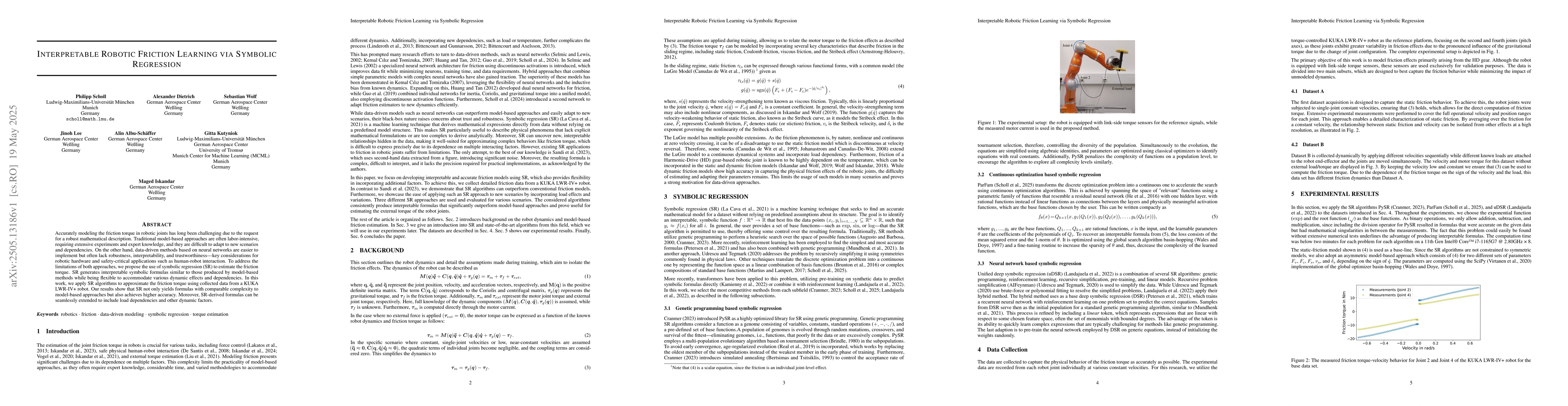 The research applies symbolic regression (SR) algorithms to approximate friction torque using data from a KUKA LWR-IV+ robot, aiming to balance interpretability and accuracy.