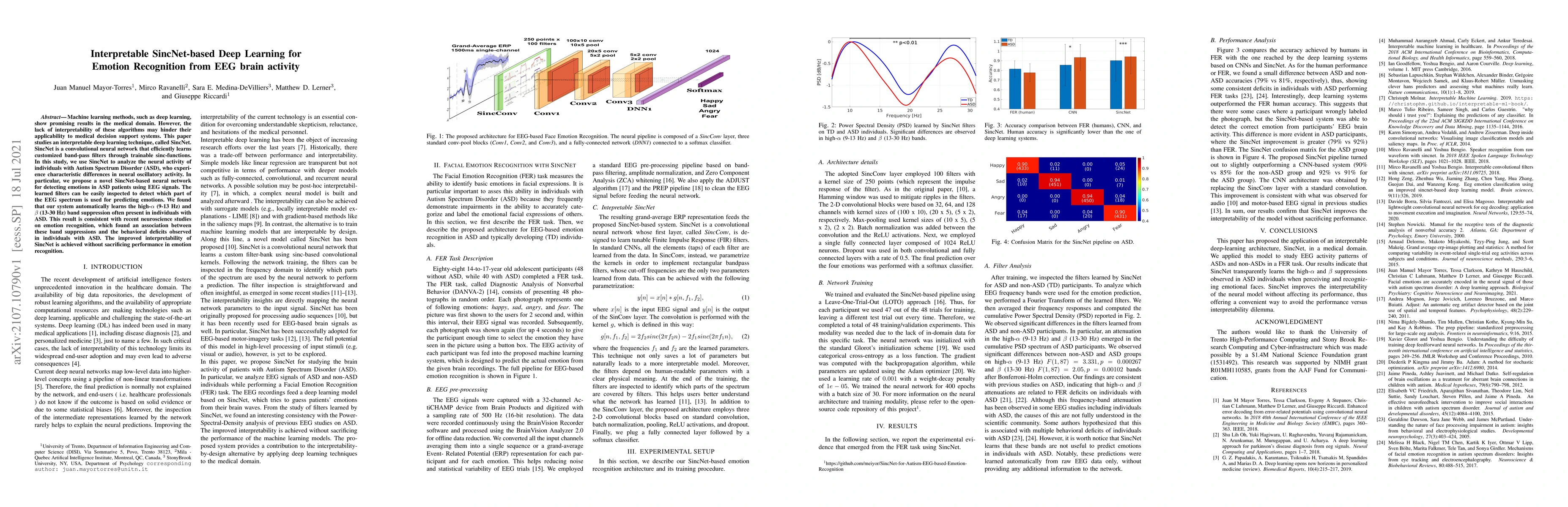 Researchers used SincNet, an interpretable deep learning technique, to detect emotions in EEG signals from individuals with Autism Spectrum Disorder (ASD) with high accuracy, revealing unique band-pass filter patterns associated with the condition.