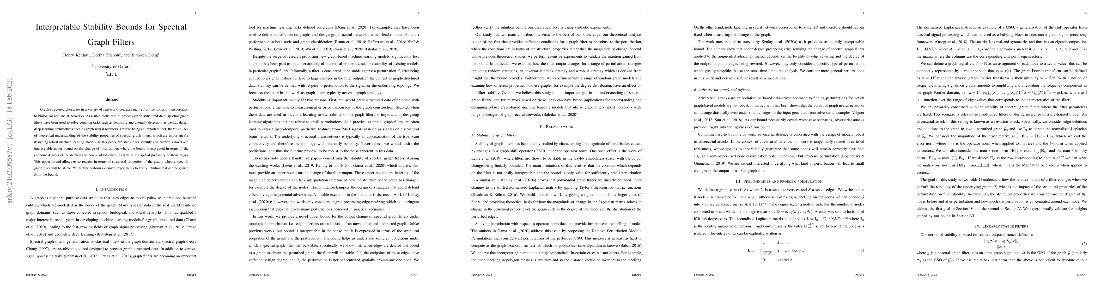 This paper develops an interpretable stability bound for spectral graph filters, providing insight into their robustness via structural graph properties like endpoint degrees and edge proximity. Experimental validation supports the practical utility of the proposed theoretical framework.