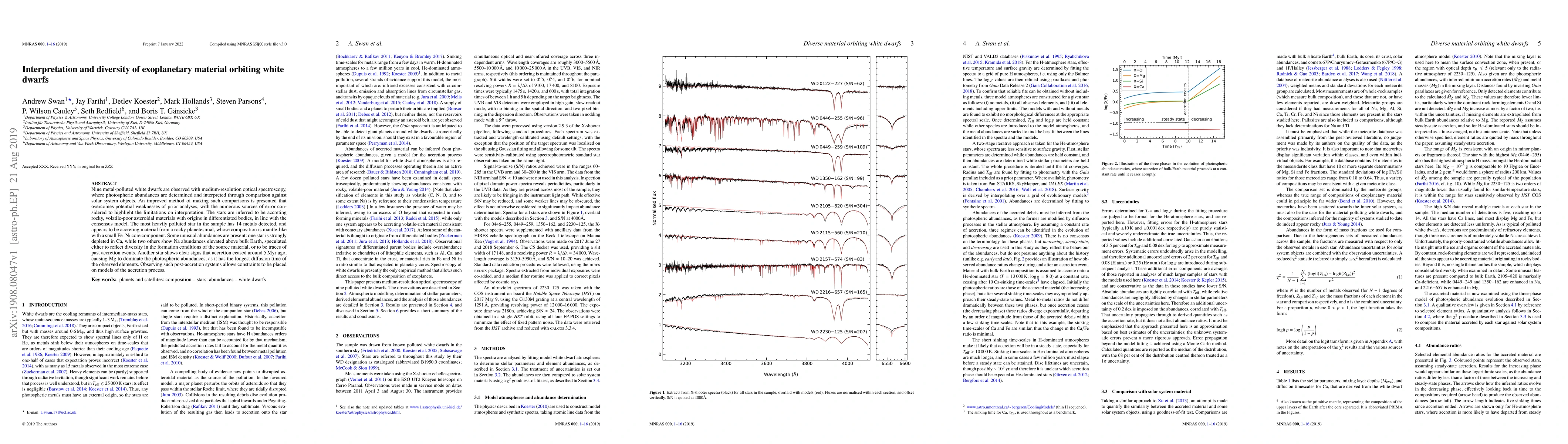 Nine metal-polluted white dwarfs are observed with medium-resolution optical spectroscopy,where photospheric abundances are determined and interpreted through comparison against solar system objects. An improved method of making such comparisons is presented that overcomes potential weaknesses of prior analyses, with the numerous sources of error considered to highlight the limitations on interpretation. The stars are inferred to be accreting rocky, volatile-poor asteroidal materials with origins in differentiated bodies, in line with the consensus model. The most heavily polluted star in the sample has 14 metals detected, and appears to be accreting material from a rocky planetesimal, whose composition is mantle-like with a small Fe-Ni core component. Some unusual abundances are present: one star is strongly depleted in Ca, while two others show Na abundances elevated above bulk Earth, speculated either to reflect diversity in the formation conditions of the source material, or to be traces of past accretion events. Another star shows clear signs that accretion ceased around 5 Myr ago,causing Mg to dominate the photospheric abundances, as it has the longest diffusion time of the observed elements. Observing such post-accretion systems allows constraints to be placed on models of the accretion process.