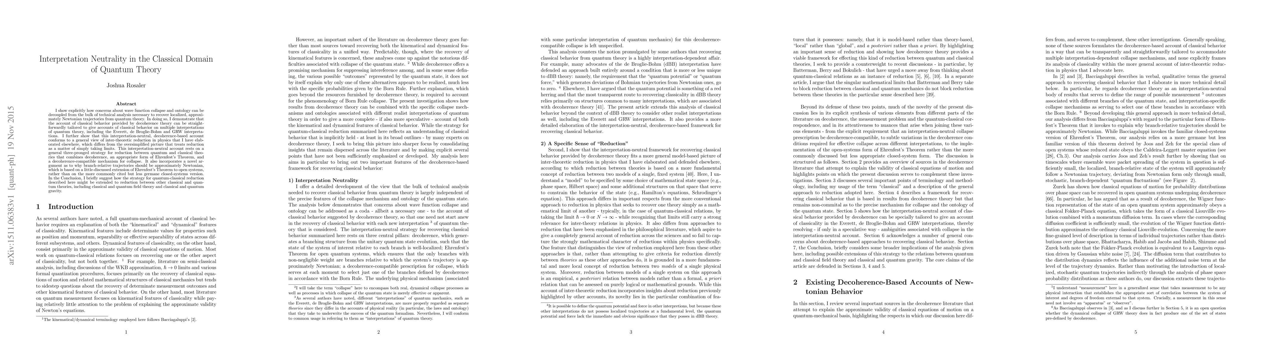 I show explicitly how concerns about wave function collapse and ontology can be decoupled from the bulk of technical analysis necessary to recover localized, approximately Newtonian trajectories from quantum theory. In doing so, I demonstrate that the account of classical behavior provided by decoherence theory can be straightforwardly tailored to give accounts of classical behavior on multiple interpretations of quantum theory, including the Everett, de Broglie-Bohm and GRW interpretations. I further show that this interpretation-neutral, decoherence-based account conforms to a general view of inter-theoretic reduction in physics that I have elaborated elsewhere, which differs from the oversimplified picture that treats reduction as a matter of simply taking limits. This interpretation-neutral account rests on a general three-pronged strategy for reduction between quantum and classical theories that combines decoherence, an appropriate form of Ehrenfest's Theorem, and a decoherence-compatible mechanism for collapse. It also incorporates a novel argument as to why branch-relative trajectories should be approximately Newtonian, which is based on a little-discussed extension of Ehrenfest's Theorem to open systems, rather than on the more commonly cited but less germane closed-systems version. In the Conclusion, I briefly suggest how the strategy for quantum-classical reduction described here might be extended to reduction between other classical and quantum theories, including classical and quantum field theory and classical and quantum gravity.