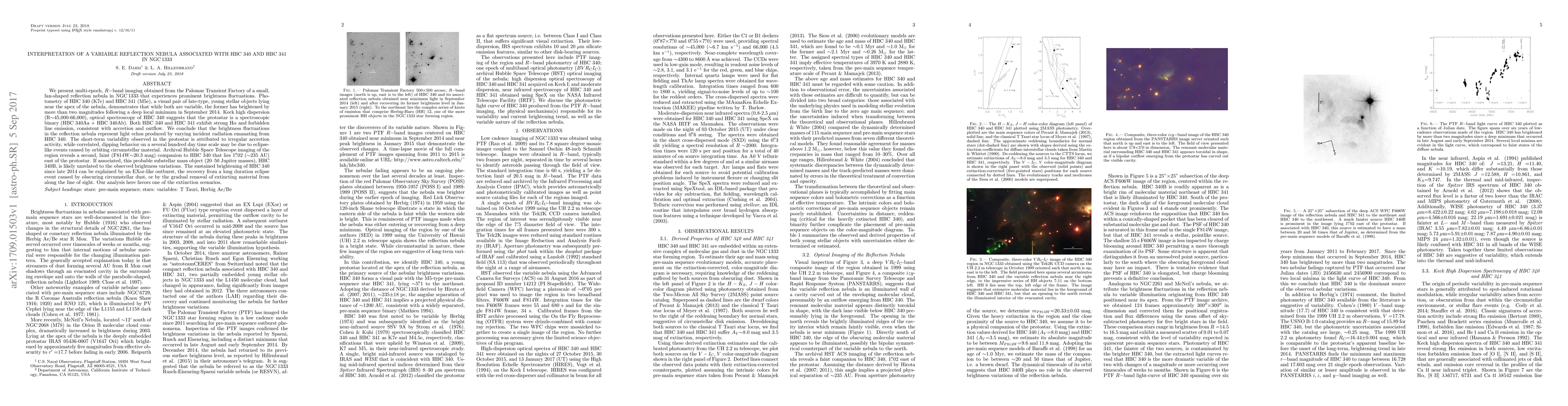 We present multi-epoch, $R-$band imaging obtained from the Palomar Transient Factory of a small, fan-shaped reflection nebula in NGC 1333 that experiences prominent brightness fluctuations. Photometry of HBC 340 (K7e) and HBC 341 (M5e), a visual pair of late-type, young stellar objects lying near the apex of the nebula, demonstrates that while both are variable, the former has brightened by more than two magnitudes following a deep local minimum in September 2014. Keck high dispersion (R$\sim$45,000-66,000), optical spectroscopy of HBC 340 suggests that the protostar is a spectroscopic binary (HBC 340Aa + HBC 340Ab). Both HBC 340 and HBC 341 exhibit strong H$\alpha$ and forbidden line emission, consistent with accretion and outflow. We conclude that the brightness fluctuations in the reflection nebula represent light echos produced by varying incident radiation emanating from HBC 340. The short-term variability observed in the protostar is attributed to irregular accretion activity, while correlated, dipping behavior on a several hundred day time scale may be due to eclipse-like events caused by orbiting circumstellar material. Archival Hubble Space Telescope imaging of the region reveals a second, faint (F814W$\sim$20.3 mag) companion to HBC 340 that lies 1.02" ($\sim$235 AU) east of the protostar. If associated, this probable substellar mass object (20-50 Jupiter masses), HBC 340B, is likely unrelated to the observed brightness variations. The sustained brightening of HBC 340 since late 2014 can be explained by an EXor-like outburst, the recovery from a long duration eclipse event caused by obscuring circumstellar dust, or by the gradual removal of extincting material from along the line of sight. Our analysis here favors one of the extinction scenarios.