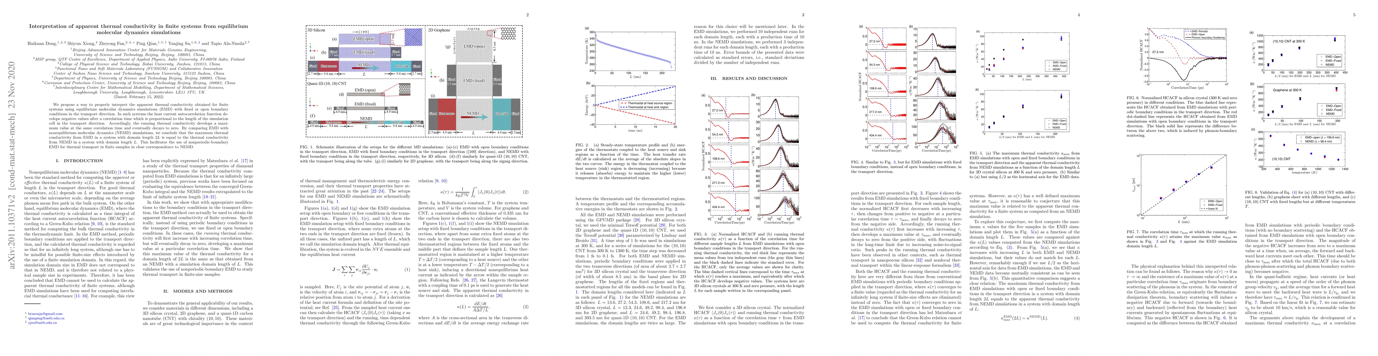This paper proposes a method to interpret the apparent thermal conductivity from equilibrium molecular dynamics simulations in finite systems, showing that the maximum value obtained corresponds to the thermal conductivity from nonequilibrium simulations in half-length systems. This insight aligns nonperiodic-boundary EMD with NEMD for thermal transport analysis.