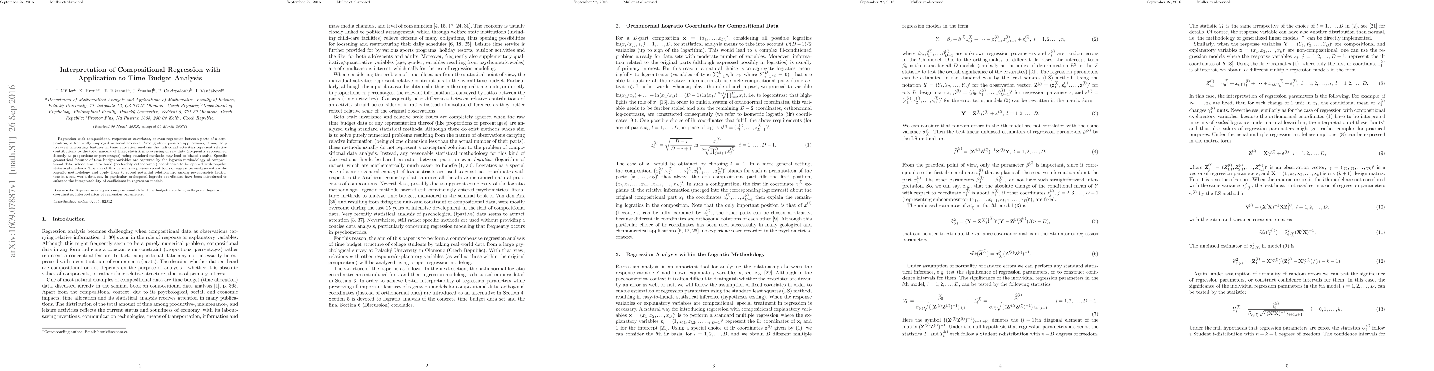 This paper introduces regression techniques for compositional data, specifically focusing on time budget analysis. It employs logratio methodologies to address biases in standard statistical methods, using orthogonal logratio coordinates to improve interpretability and reveal relationships among psychometric indicators in real-world data.