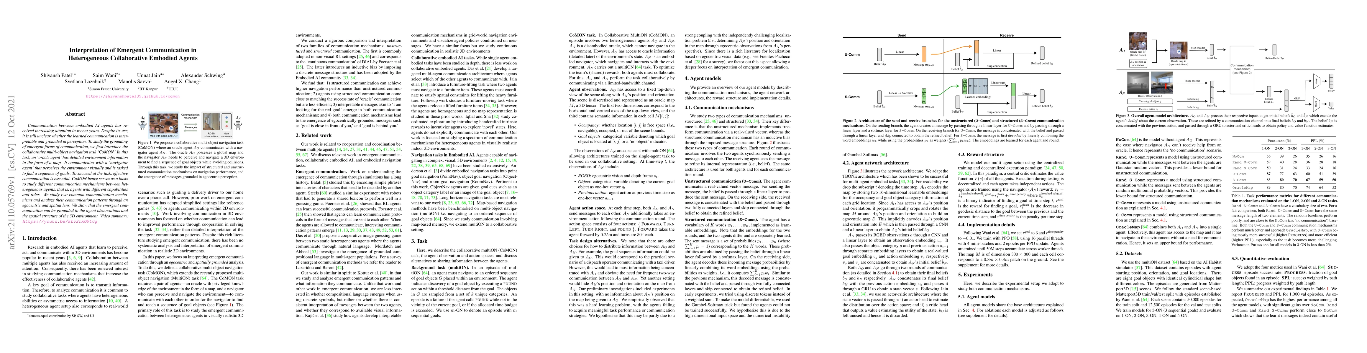 This paper investigates the interpretability and grounding of emergent communication in heterogeneous embodied AI agents using a collaborative navigation task. It demonstrates that effective communication between agents with different capabilities can be grounded in their observations and spatial environment.